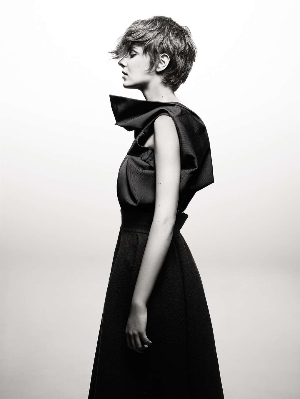 Naisten lyhyt leikkaus on virkistävän rikottu ja epäsymmetrinen pixie, johon oli haettu inspiraatiota mm. David Bowielta.